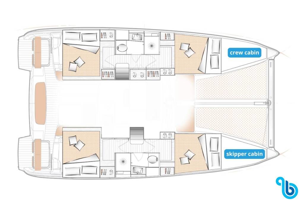 Il comandante (skipper) non è incluso nel prezzo della barca. Sarà possibile aggiungere lo skipper durante la procedura di conferma: solitamente il costo è compreso tra 180 e 250€ al giorno più vitto: Lo skipper necessita di una cabina dedicata ma previa verifica, con un operatore BeBlue, sarà possibile richiedere che dorma in dinette (salottino centrale).