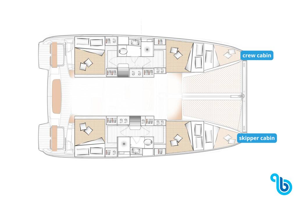 ""I 4 bagni elettrici funzionano male, così come i waste tank, il che crea agli equipaggi disagi. Impianto casse buone, frigo e cucina nella Media. Vele buone e performanti. La catena dell'ancora tende ad uscire dal rullino di plastica anteriore rendendo molto faticoso il recupero per il barbotin. ""