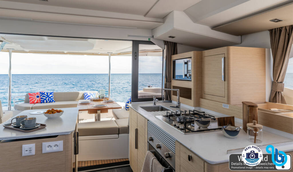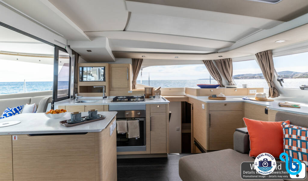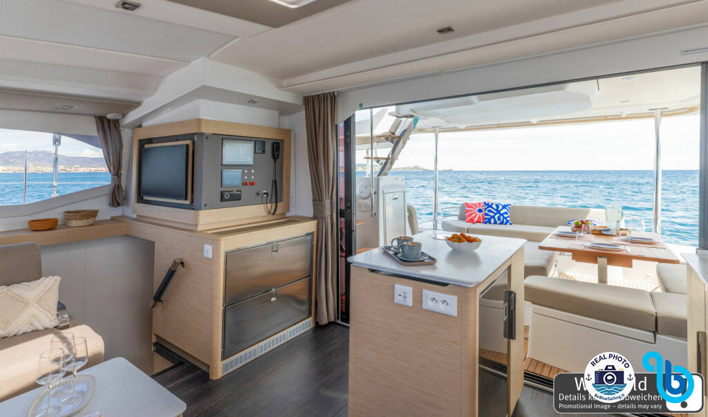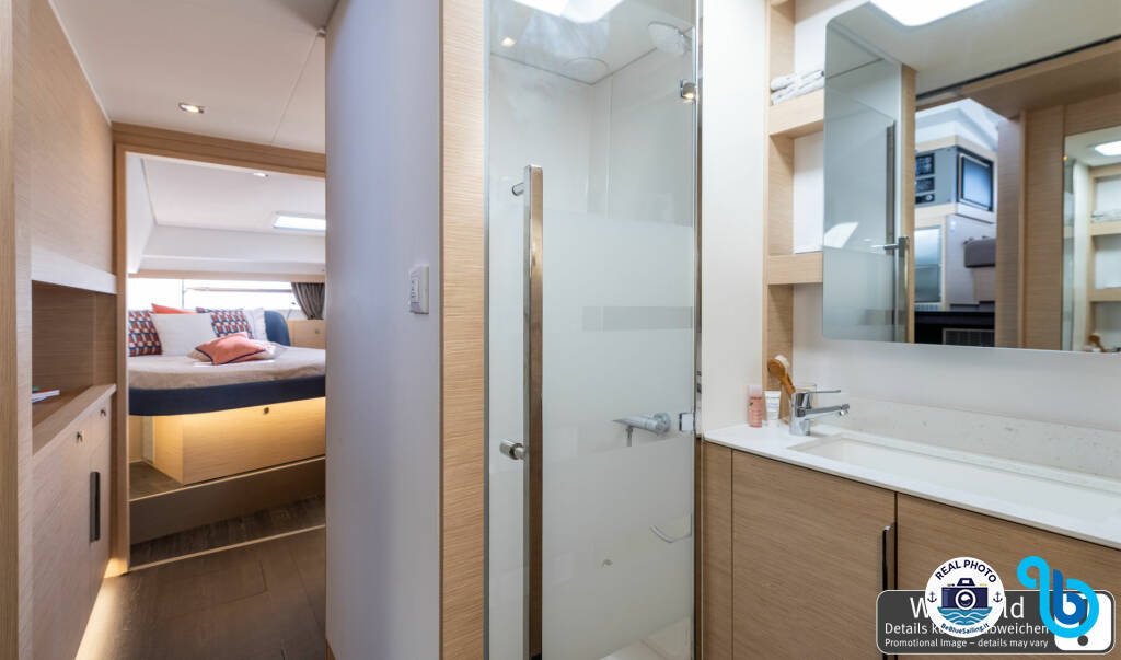 "Catamarano tenuto molto bene, unica pecca serbatoio acqua di scarsa capacità (500lt)"