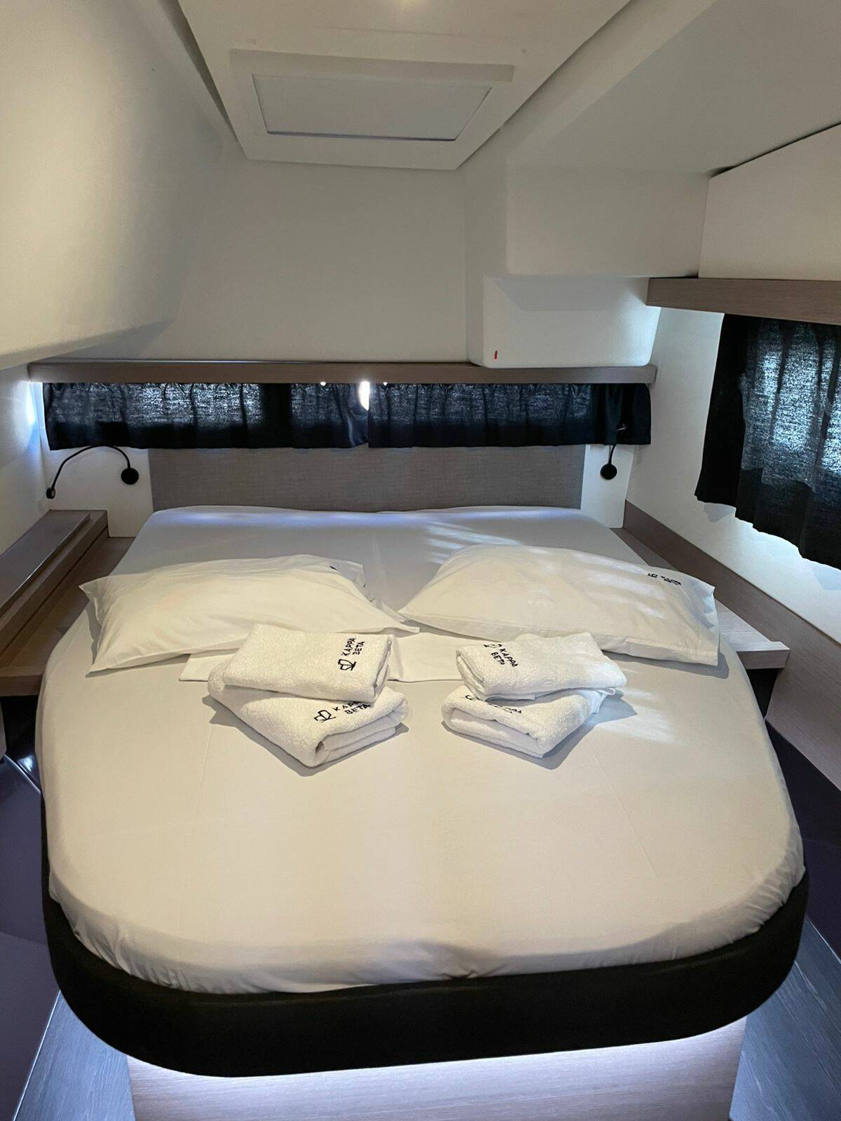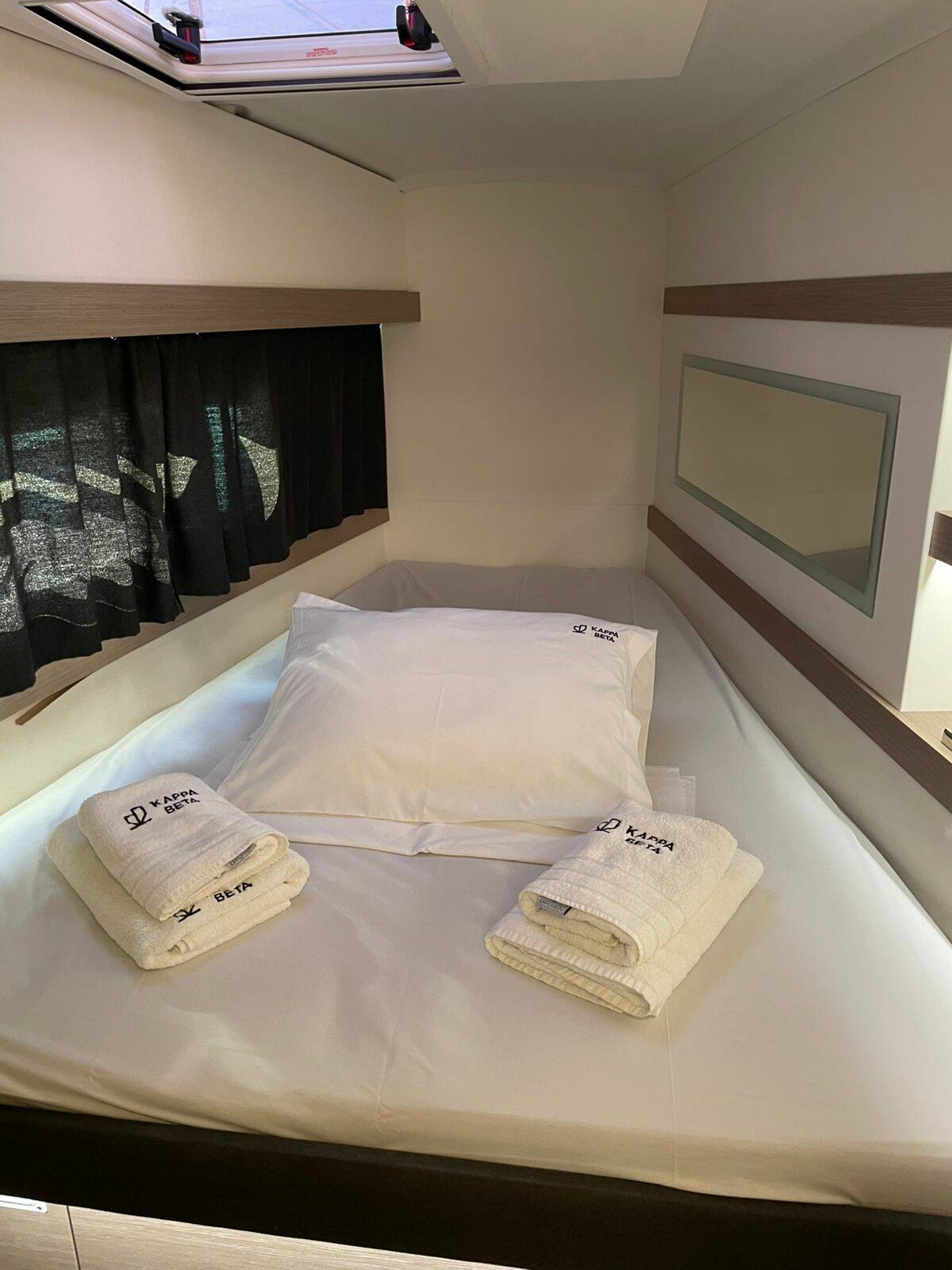 Il comandante (skipper) non è incluso nel prezzo della barca. Sarà possibile aggiungere lo skipper durante la procedura di conferma: solitamente il costo è compreso tra 180 e 250€ al giorno più vitto: Lo skipper necessita di una cabina dedicata ma previa verifica, con un operatore BeBlue, sarà possibile richiedere che dorma in dinette (salottino centrale).