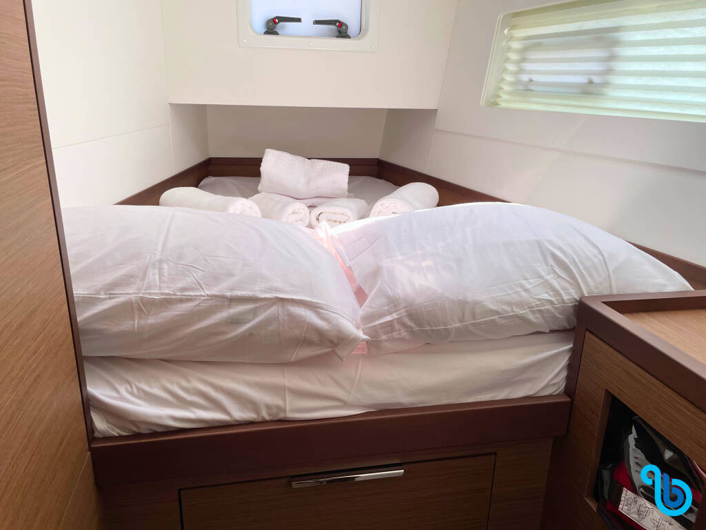 "Modello 2023, tenuto abbastanza bene. Ancora 70m (solo!), watermaker consegnato non funzionante. Vele e manovre in ordine, molto spazio, frigorifero americano. Attenzione al check in, carente."