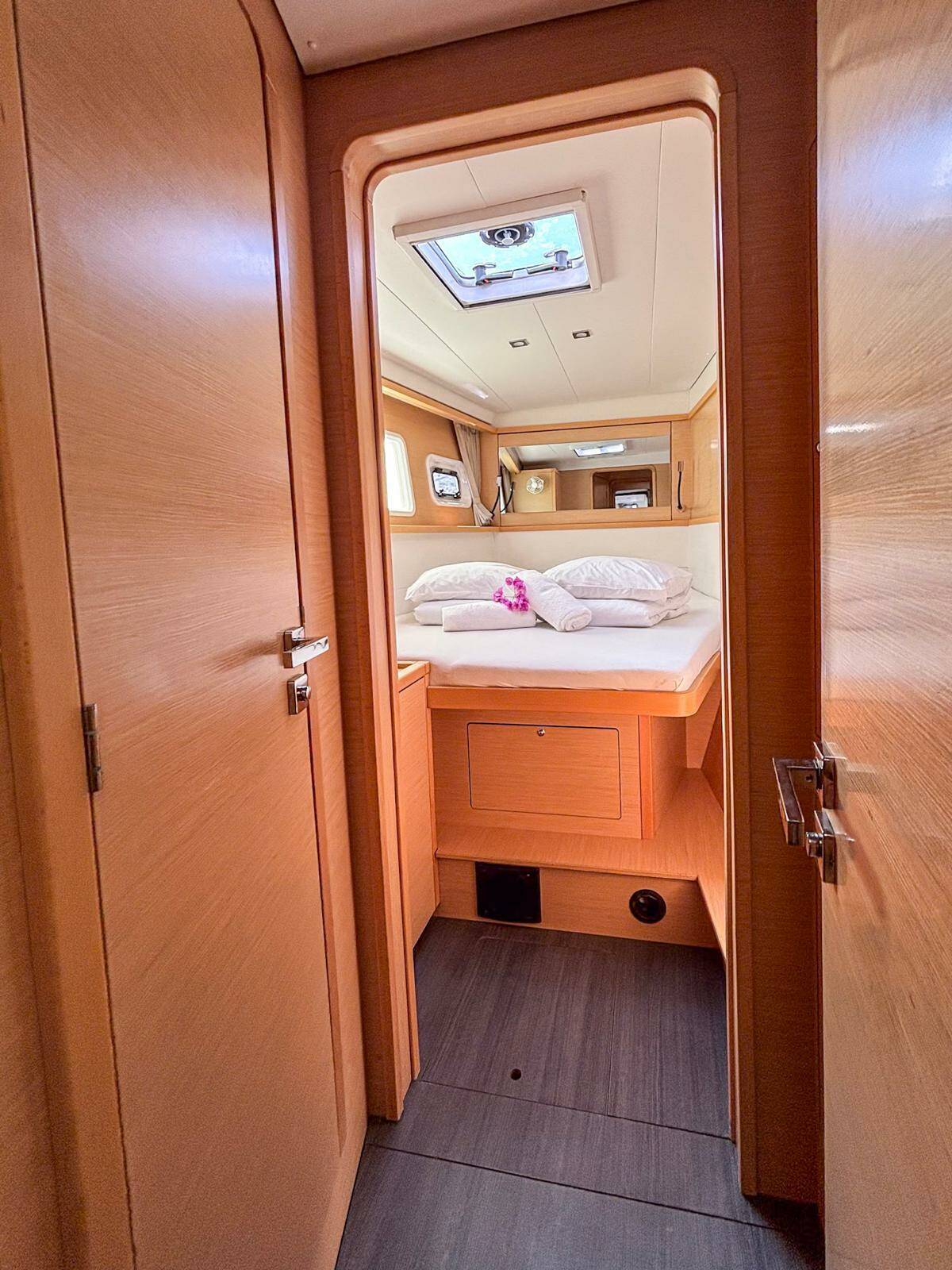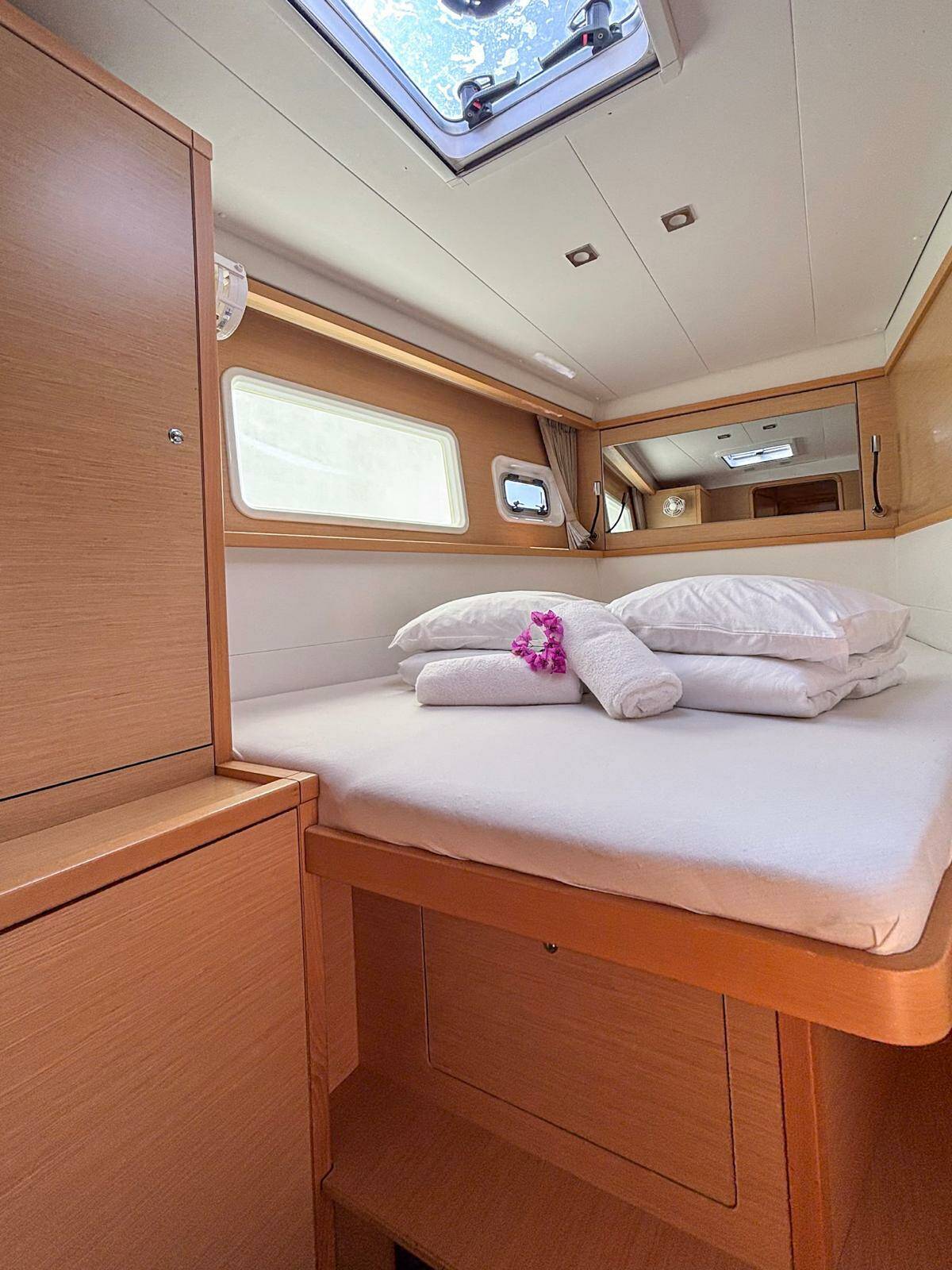 Il comandante (skipper) non è incluso nel prezzo della barca. Sarà possibile aggiungere lo skipper durante la procedura di conferma: solitamente il costo è compreso tra 180 e 250€ al giorno più vitto: Lo skipper necessita di una cabina dedicata ma previa verifica, con un operatore BeBlue, sarà possibile richiedere che dorma in dinette (salottino centrale).