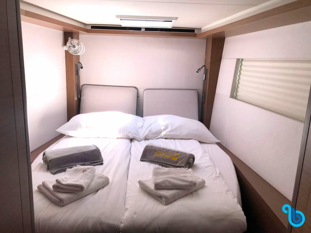Il comandante (skipper) non è incluso nel prezzo della barca. Sarà possibile aggiungere lo skipper durante la procedura di conferma: solitamente il costo è compreso tra 180 e 250€ al giorno più vitto: Lo skipper necessita di una cabina dedicata ma previa verifica, con un operatore BeBlue, sarà possibile richiedere che dorma in dinette (salottino centrale).