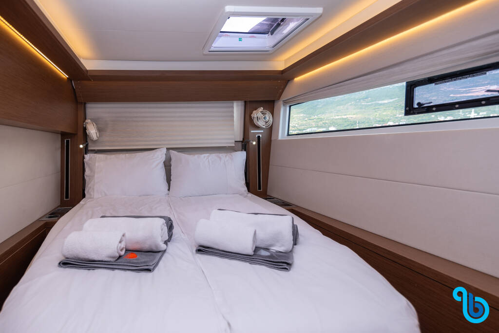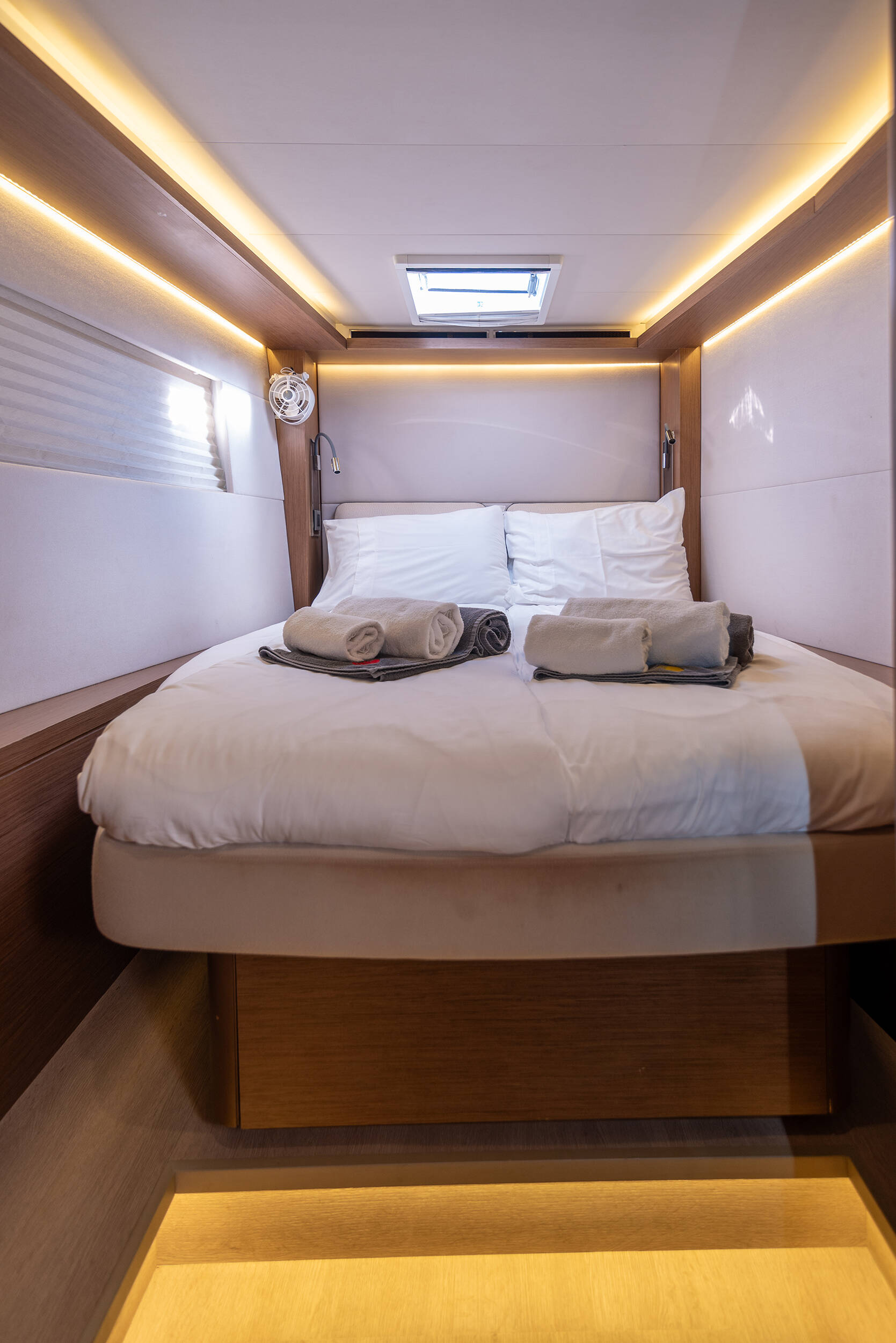 Il comandante (skipper) non è incluso nel prezzo della barca. Sarà possibile aggiungere lo skipper durante la procedura di conferma: solitamente il costo è compreso tra 180 e 250€ al giorno più vitto: Lo skipper necessita di una cabina dedicata ma previa verifica, con un operatore BeBlue, sarà possibile richiedere che dorma in dinette (salottino centrale).