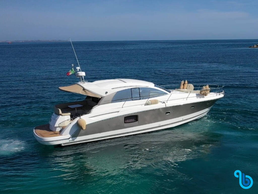 Il Prestige 440 S Pato (Barca a Motore), è stato varato nel 2011 ed è basato in Italia - Sicilia, Eolie della città di Porto di Giardini-Giardini Naxos. Lo scafo è allestito con 2 cabine e 2 wc ed è omologato per ospitare comodamente 7 persone.