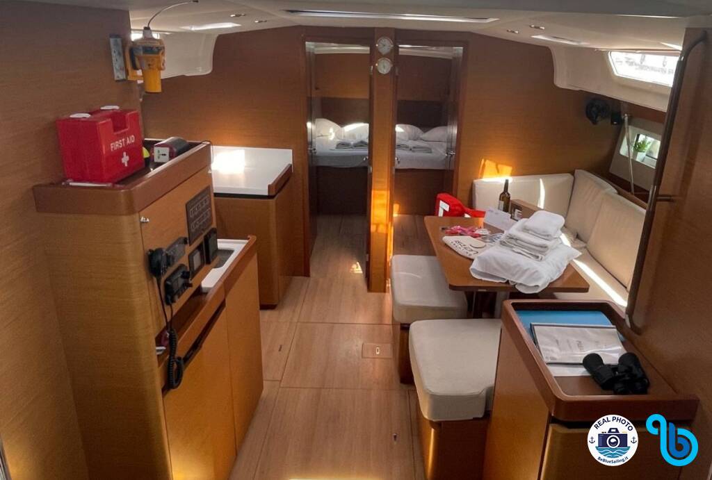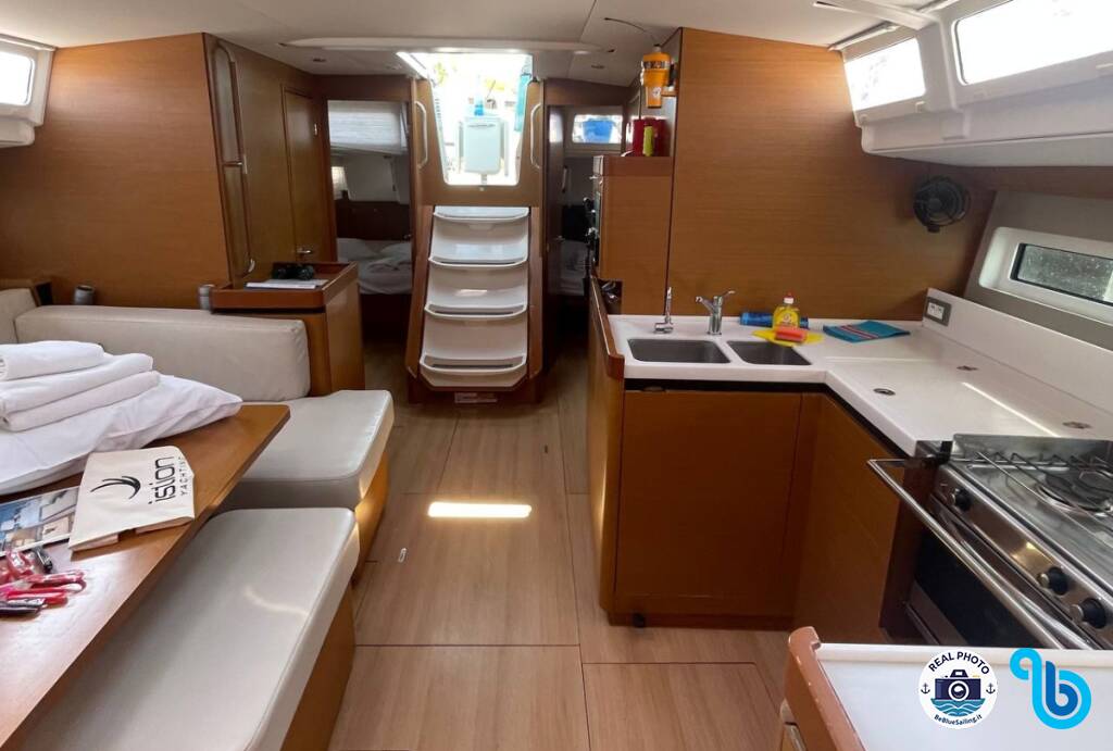 "Barca comoda e funzionale, qualche soluzione originale come le panche pozzetto trasformabili in letto/prendisole. Molto luminosi gli interni. Spazio stivaggio cambusa un po' ridotto o dimensionato per uso armatoriale."