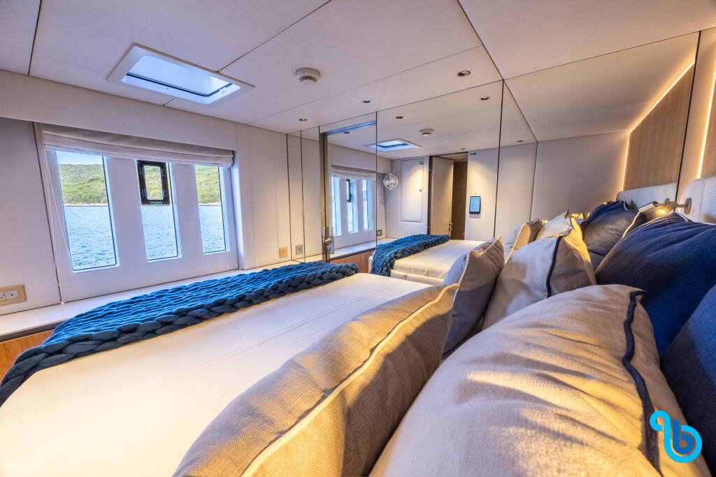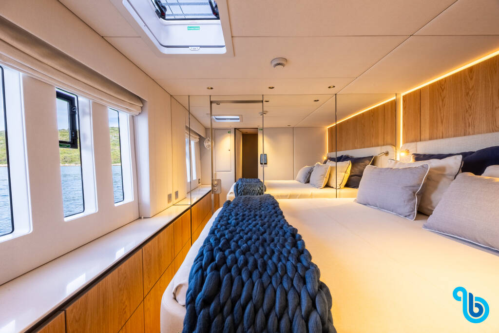 Il comandante (skipper) non è incluso nel prezzo della barca. Sarà possibile aggiungere lo skipper durante la procedura di conferma: solitamente il costo è compreso tra 180 e 250€ al giorno più vitto: Lo skipper necessita di una cabina dedicata ma previa verifica, con un operatore BeBlue, sarà possibile richiedere che dorma in dinette (salottino centrale).