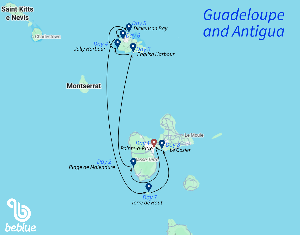 Salpa con noi per un'indimenticabile crociera di 9 giorni alla scoperta della Guadalupa e di Antigua! Navigheremo in un paradiso tropicale, esplorando isole incantevoli e fondali marini ricchi di vita, a bordo di confortevoli catamarani con skipper e hostess esperti in partenza da Pointe-à-Pitre. Vi porteremo alla scoperta di Terre-De-Haut e Marie Galante fino a raggiungere Antigua, con baie suggestive, spiagge di sabbia bianca, acque turchesi e una vegetazione lussureggiante. Potrai immergerti in acque cristalline, fare snorkeling tra coralli colorati, assaporare la cucina locale e rilassarti sotto il sole dei Caraibi e festeggiare assieme a noi l'arrivo del nuovo anno!