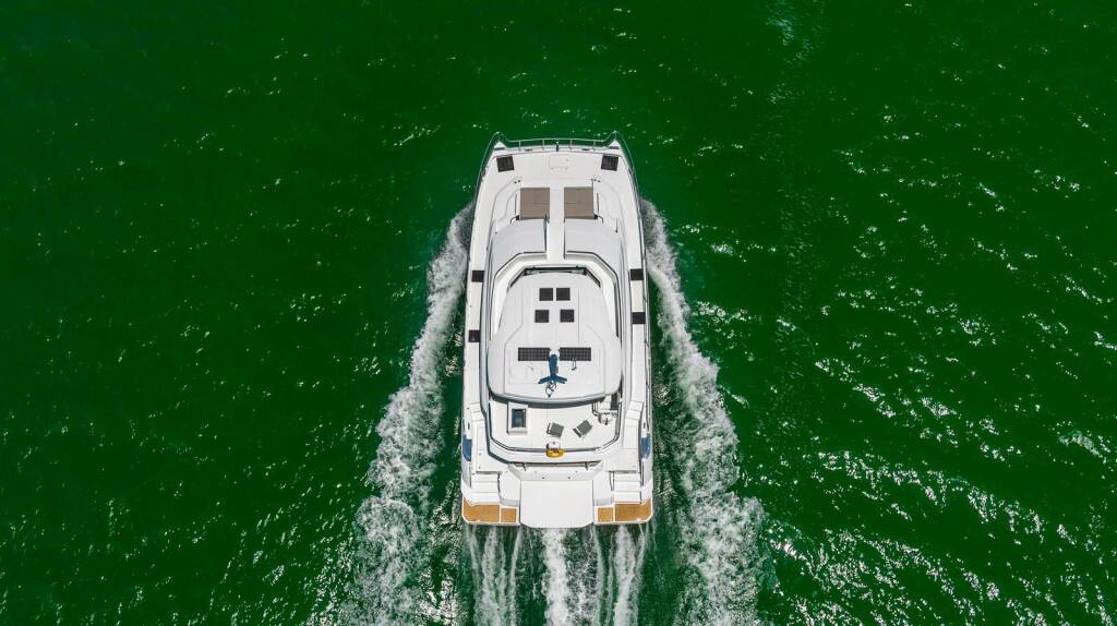 When the sun has set and you are ready to rest, you will feel at home in our spacious and comfortable cabins. Each cabin is equipped with storage space for your belongings and a queen bed. (King in master) The galley and salon have a contemporary configuration and an open-concept space perfect for enjoying time with friends and family. A flat screen TV is placed on the back wall for viewing pleasure in and out of the salon at the barstool seating. Wi-Fi is also included should you choose to stay connected on your dream vacation.
