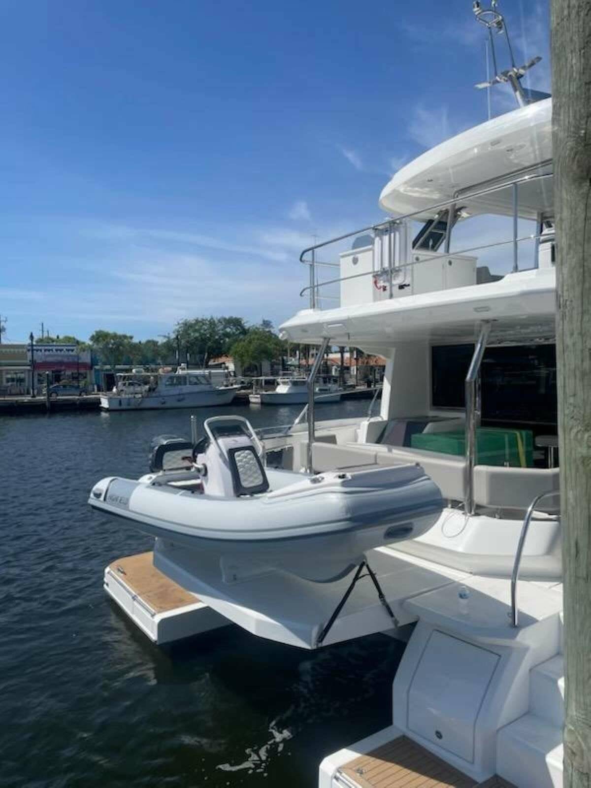 Other amenities include: lounging pads for sunbathing, electric grill located on the flybridge, electric winch-style dinghy lift platform, blue tooth capabilities, and sound system.