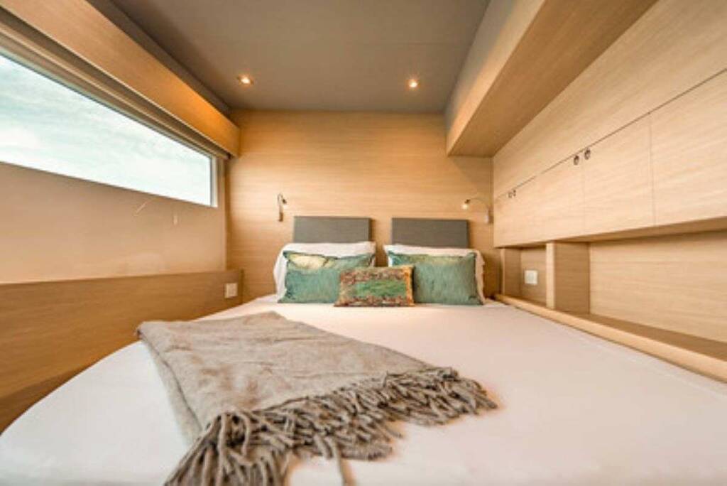 Presentiamo A Yachta Fun: Catamarano di lusso varato nel 2023. L'allestimento interno con 4 cabine, puo' ospitare comodamente 8 ospiti.