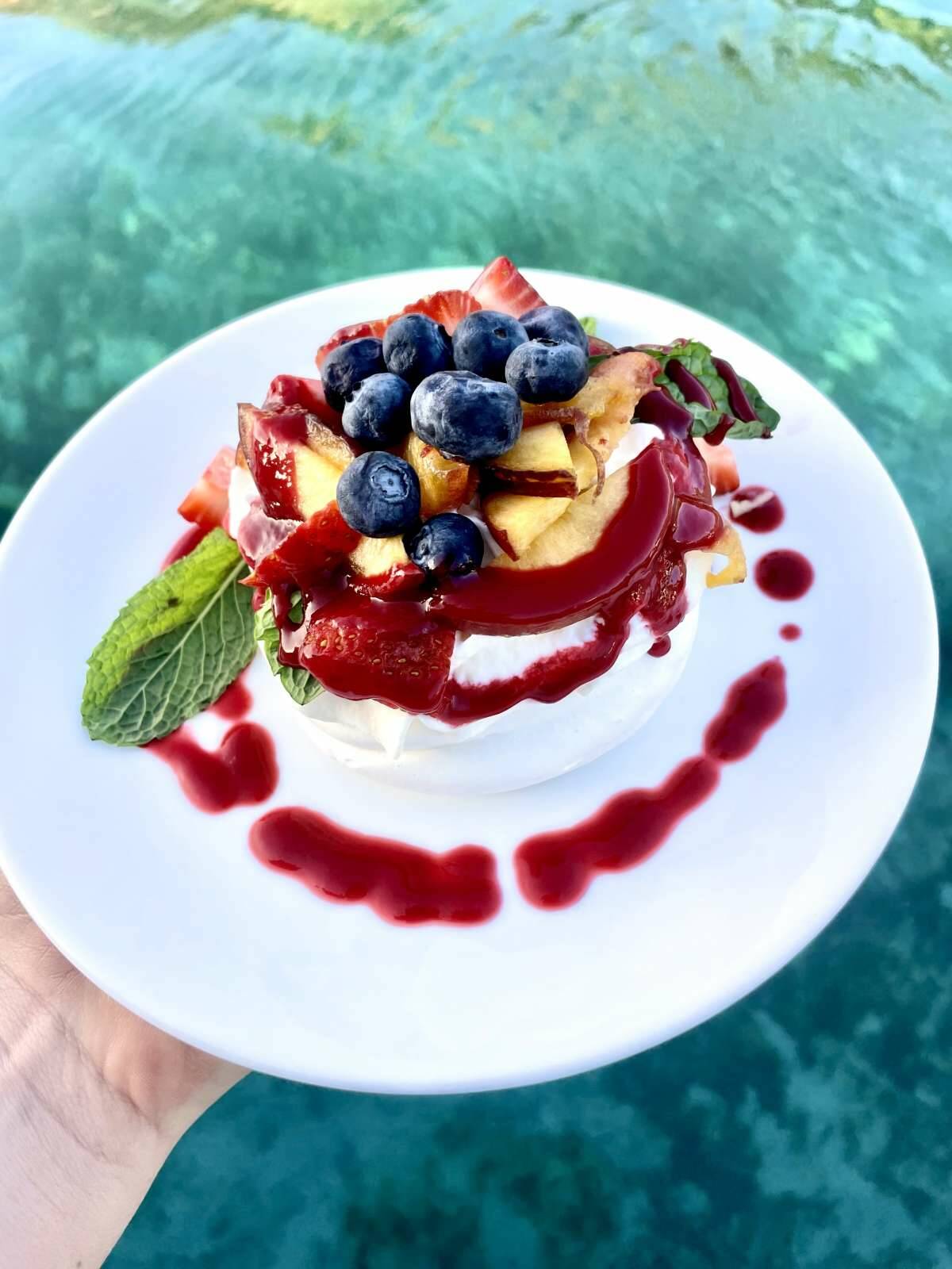 Watch the sunset as you enjoy an extraordinary meal prepared by chef Alexa. Alexa is known for her “exceptional culinary feasts” and will happily accommodate any guests’ dietary requirements. Check out her sample menu for examples of some of the delicious meals she has to offer.