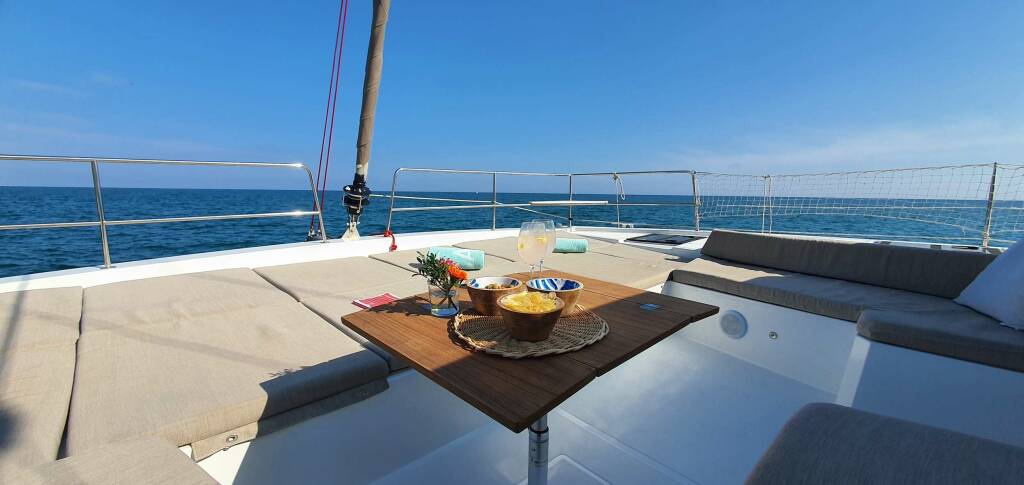 Presentiamo MARTINON: Catamarano di lusso varato nel 2023. L'allestimento interno con 5 cabine, puo' ospitare comodamente 10 ospiti.