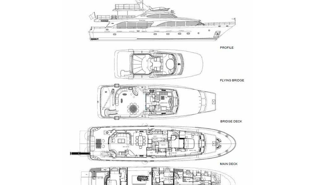 Accommodation: • MASTER STATEROOM - Main deck, full beam