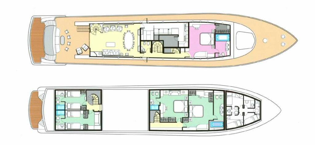 Accommodation: 1 Master Room, 2 VIP cabins and 1 twin cabin with 1 bunk bed