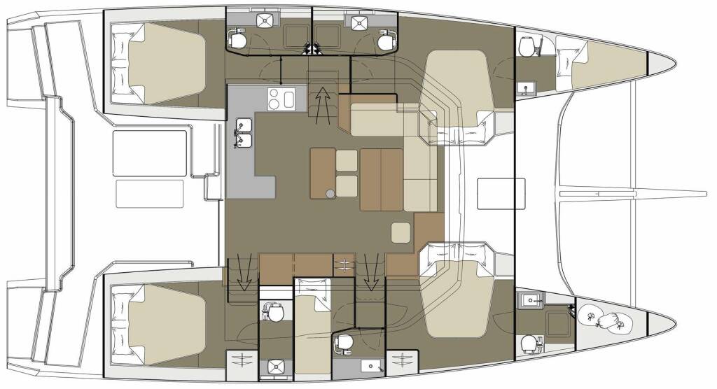 • Catamarano per ampi spazi, stabilità superiore e maggiore privacy.
