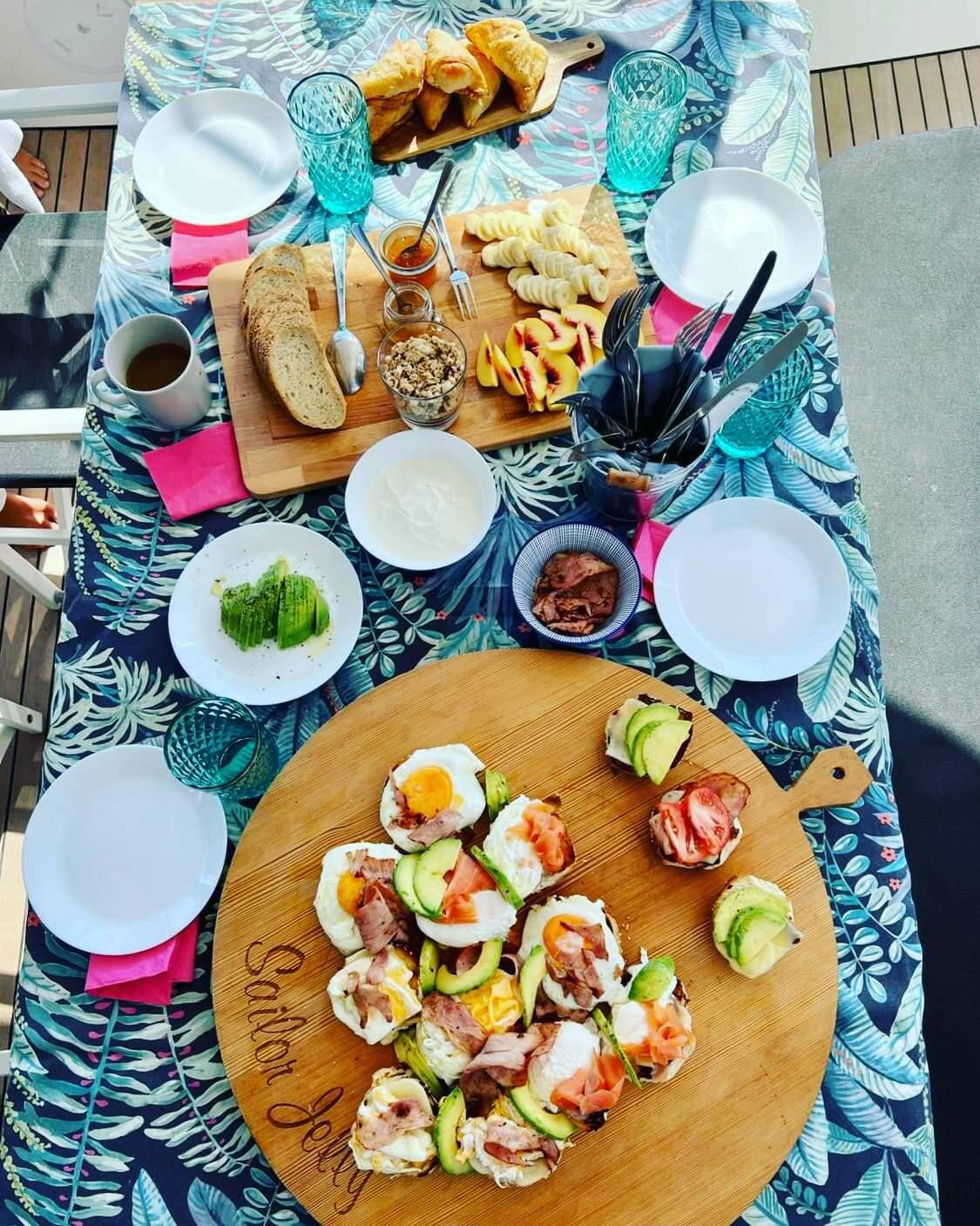 **Hostess’ responsibilities: She prepares breakfast and lunch on a daily basis, and she is also responsible for keeping the common areas of the yacht clean.
