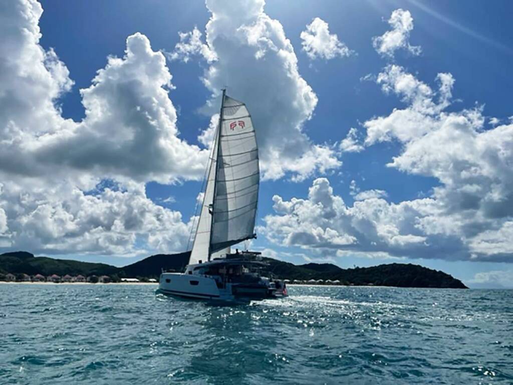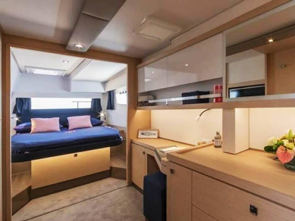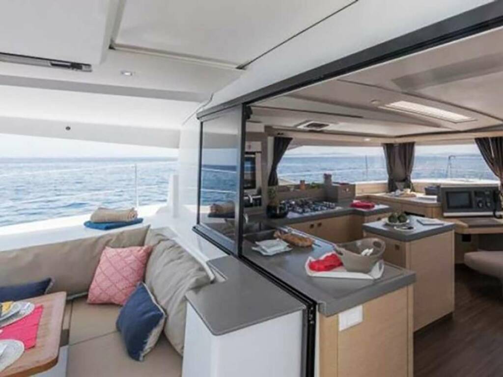 Presentiamo JIOIA 3: Catamarano di lusso varato nel 2019. L'allestimento interno con 3 cabine, puo' ospitare comodamente 4 ospiti.