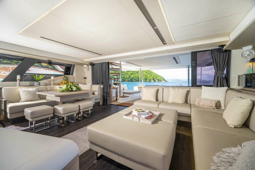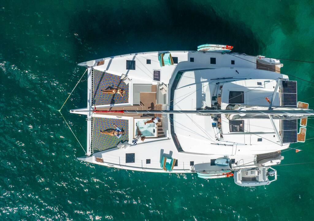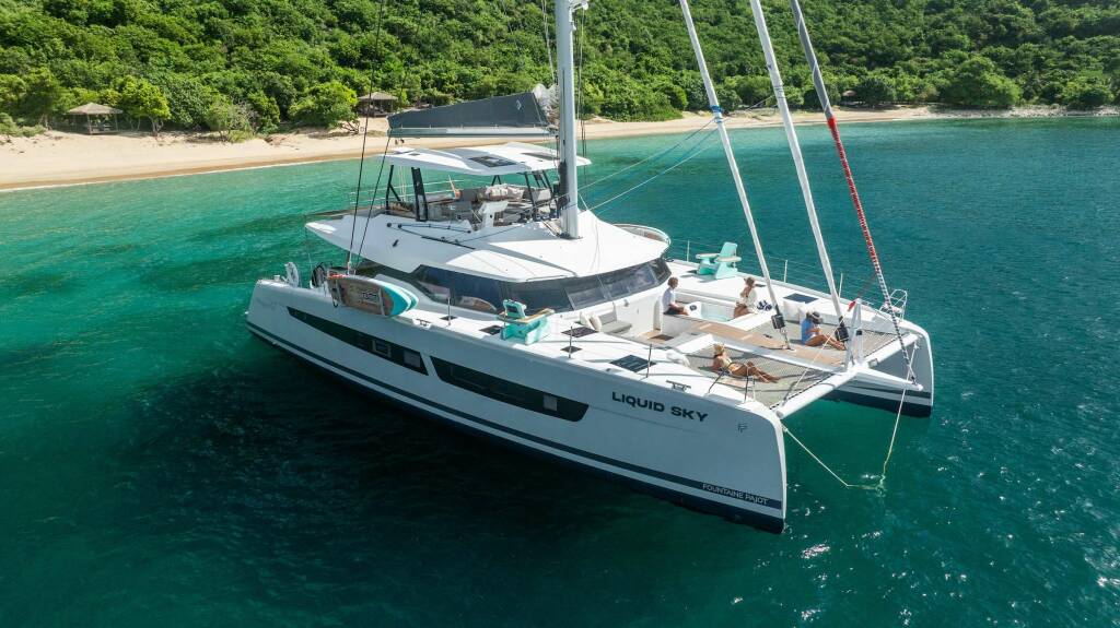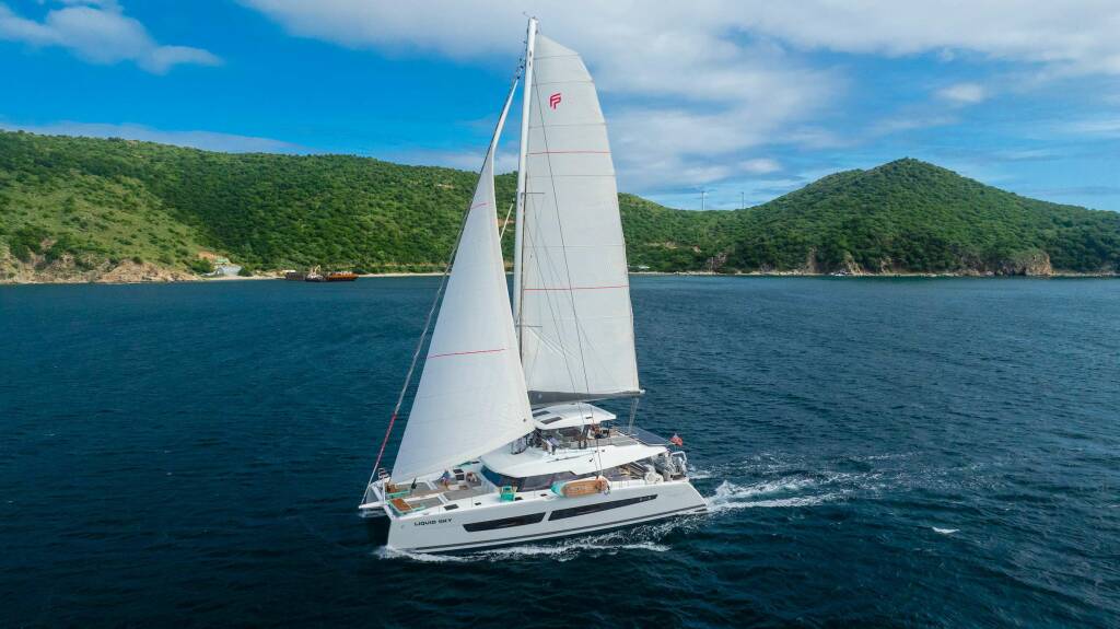 Presentiamo LIQUID SKY: Catamarano di lusso varato nel 2024. L'allestimento interno con 3 cabine, puo' ospitare comodamente 6 ospiti.