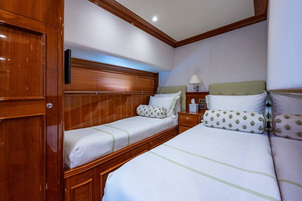 Accommodation: MASTER SUITE, FORWARD; VIP SUITE, AFT; DOUBLE TWIN, MIDSHIP; SINGLE TWIN, MIDSHIP, Three ensuite Cabins