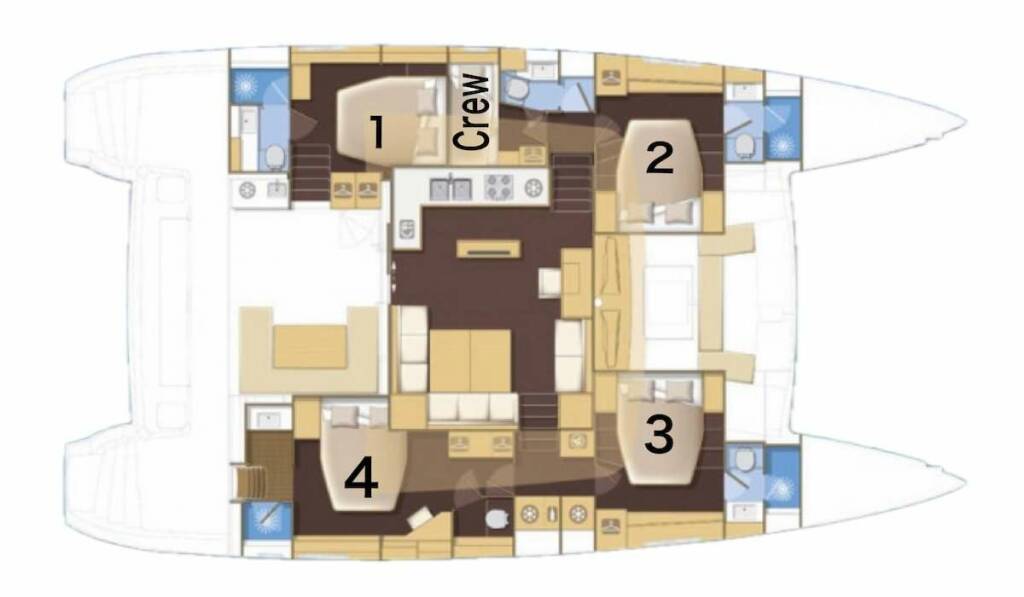 Presentiamo A3: Catamarano di lusso varato nel 2016. L'allestimento interno con 4 cabine, puo' ospitare comodamente 8 ospiti.