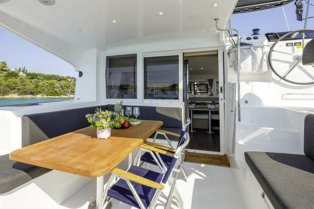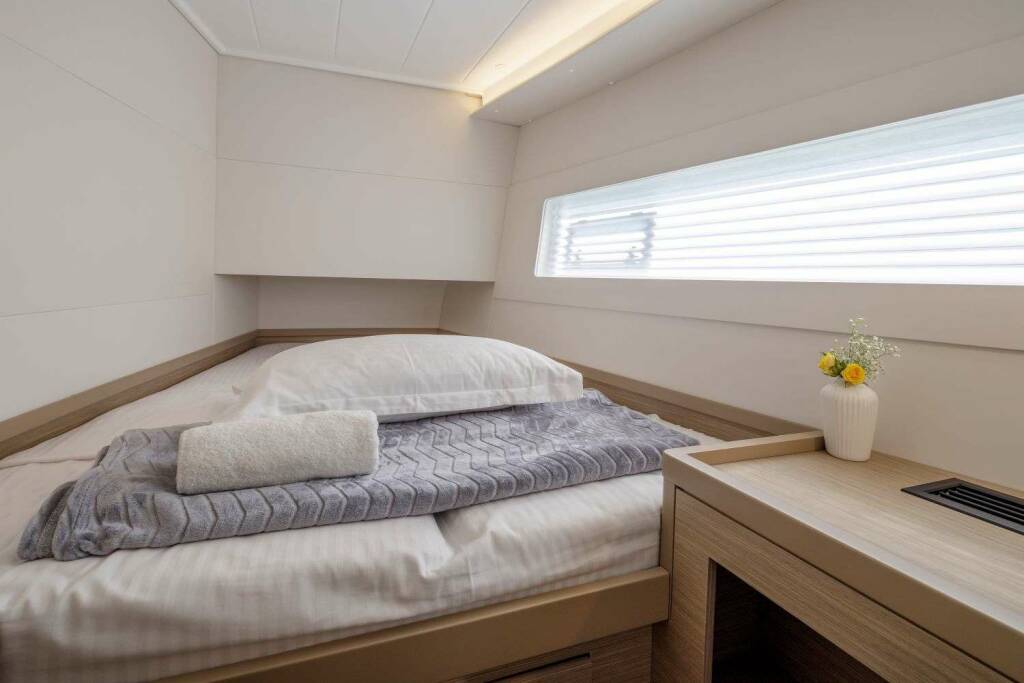 Presentiamo DEMY : Catamarano di lusso varato nel 2023. L'allestimento interno con 3 cabine, puo' ospitare comodamente 6 ospiti.