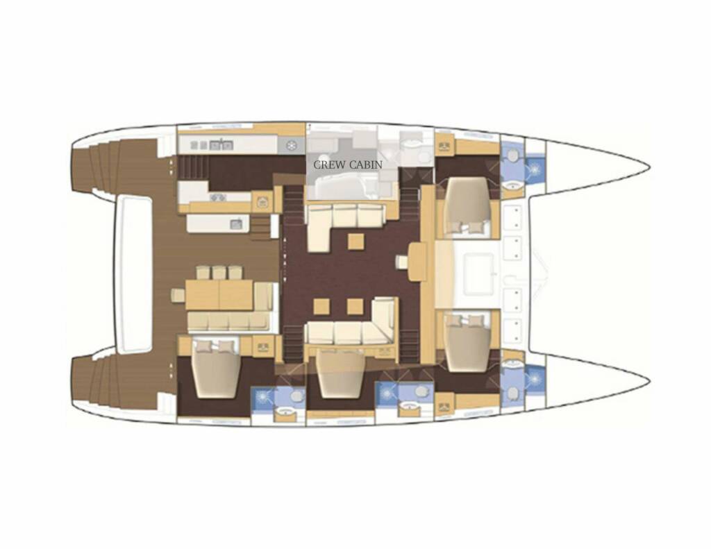 The fully equipped galley is located in the port aft hull away from guest accommodations.