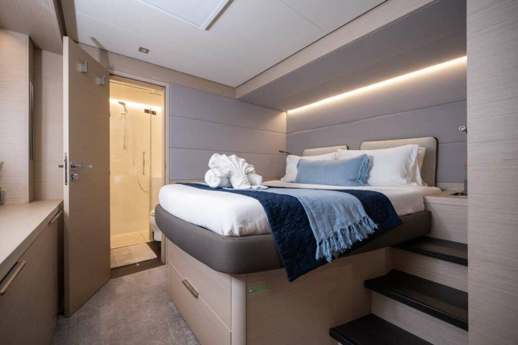 Presentiamo GULLWING : Catamarano di lusso varato nel 2024. L'allestimento interno con 4 cabine, puo' ospitare comodamente 8 ospiti.