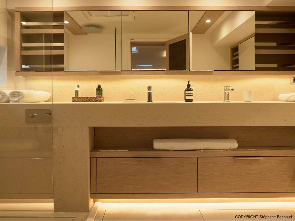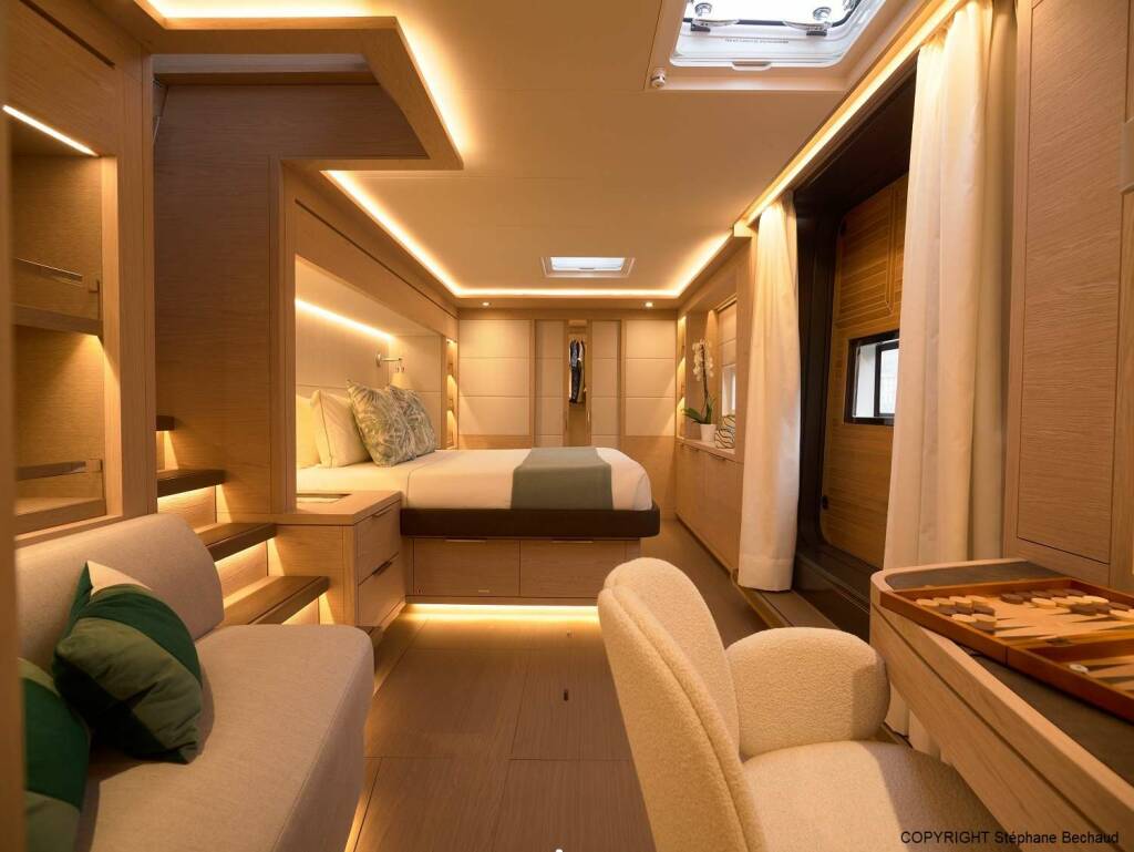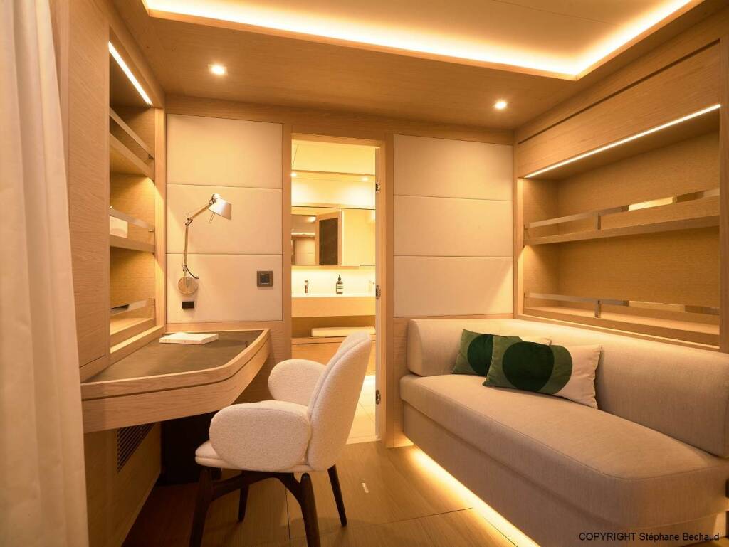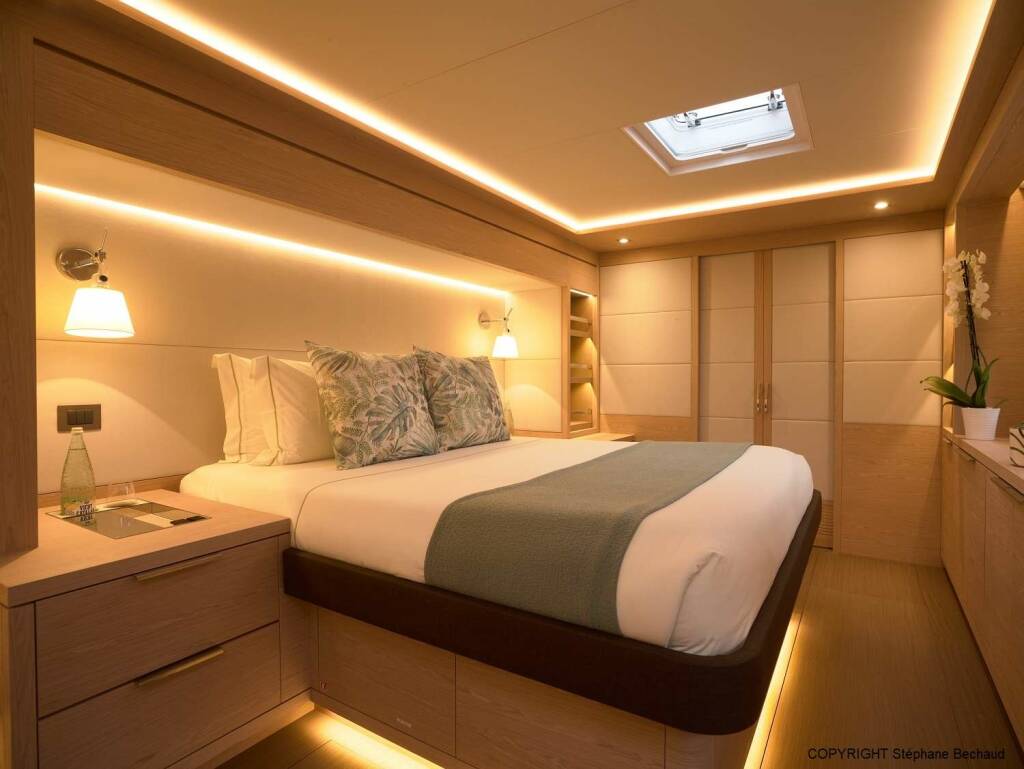 - 1 master cabin with private terrace on the sea & an ensuite spacious bathroom, large sofa & walk-in dressing - bed size 1,80 m x 2,05 m