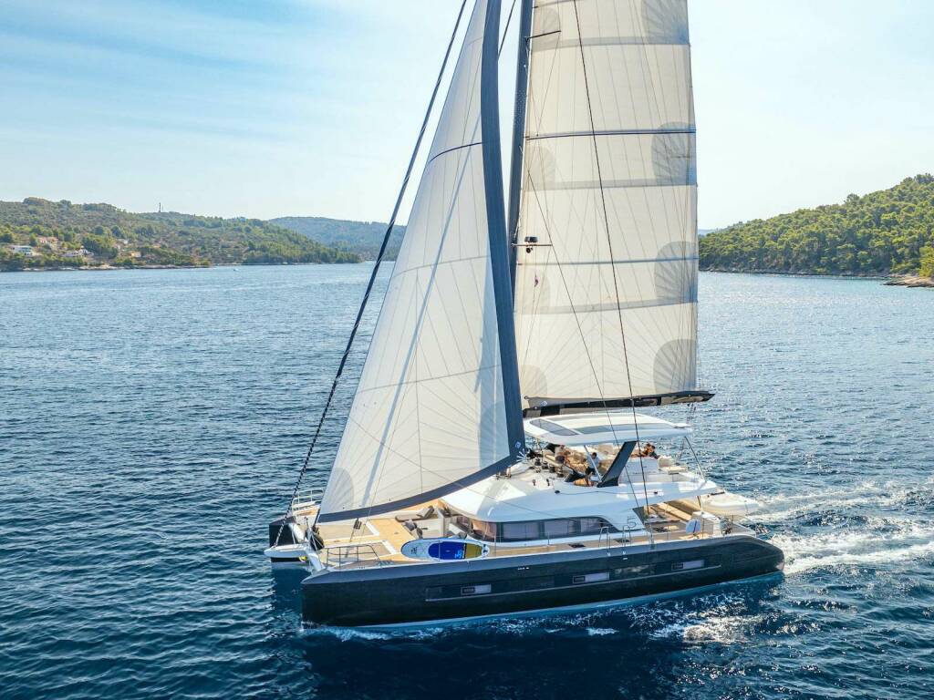 Presentiamo PALOMA: Catamarano di lusso varato nel 2024. L'allestimento interno con 4 cabine, puo' ospitare comodamente 10 ospiti.