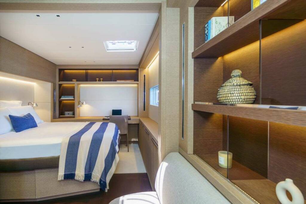 Owners Cabin - The owners' cabin has a double bed, a large closet & bathroom, in addition to a working desk and a sofa, with a personal access door to the aft deck.