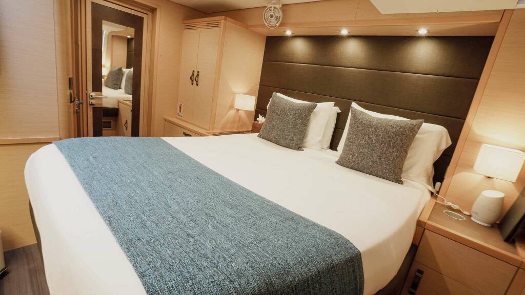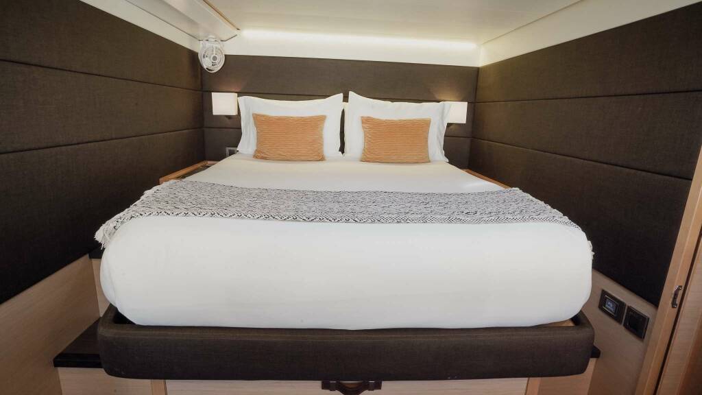 Vibrant, improved interior, including a refit of the galley, new decor in all the cabins, and installation of Samsung SMART TVs in both aft cabins.