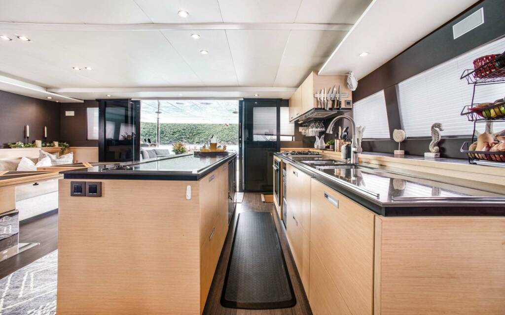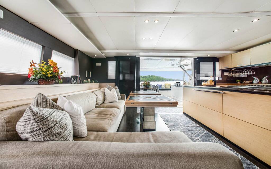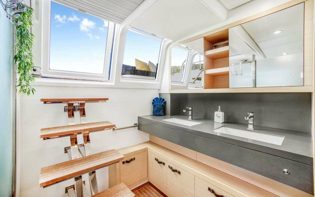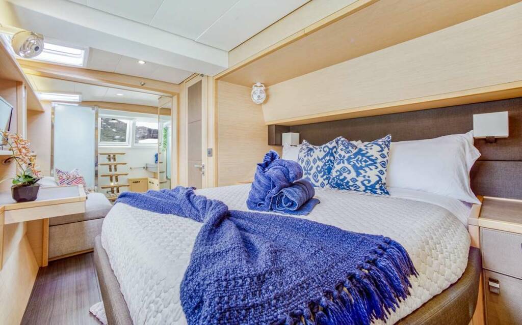 Accommodation: Ultra can accommodate 8 guests in 4 cabins - 1 primary cabin and 2 queen cabins and one twin with upper/lower berths ideal for kids, all ensuite. The primary cabin is well appointed with a sofa and large closets and drawers.