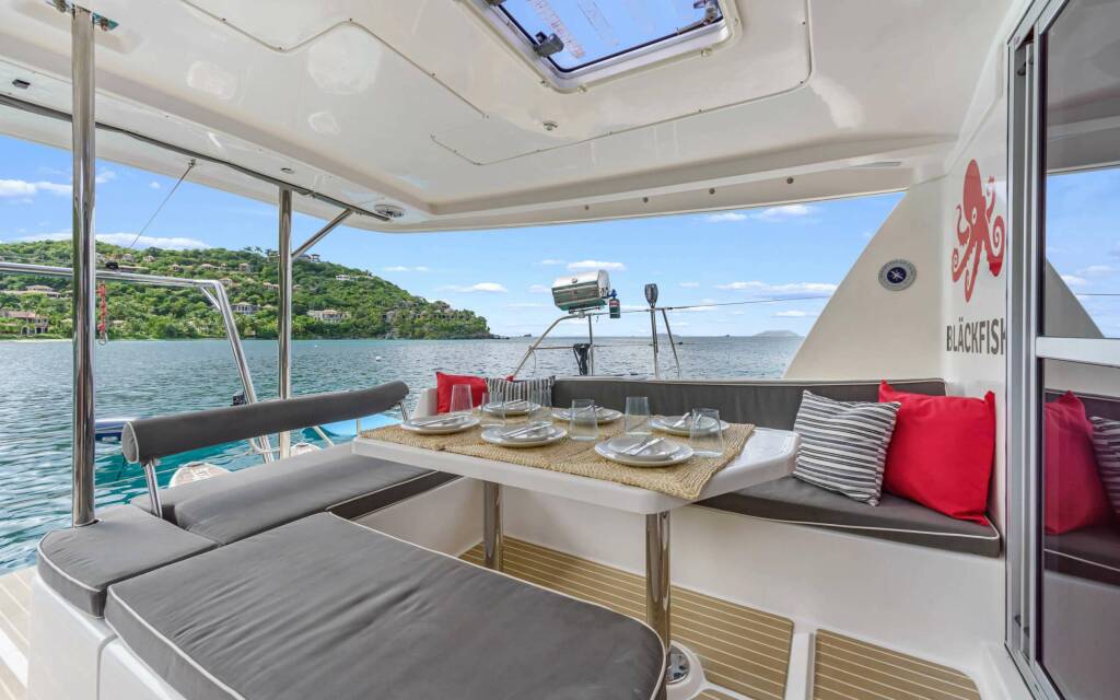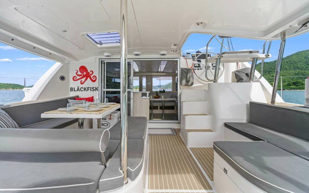 Presentiamo BLACKFISK: Catamarano di lusso varato nel 2015. L'allestimento interno con 3 cabine, puo' ospitare comodamente 6 ospiti.