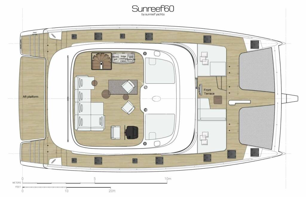 • Catamarano per ampi spazi, stabilità superiore e maggiore privacy.