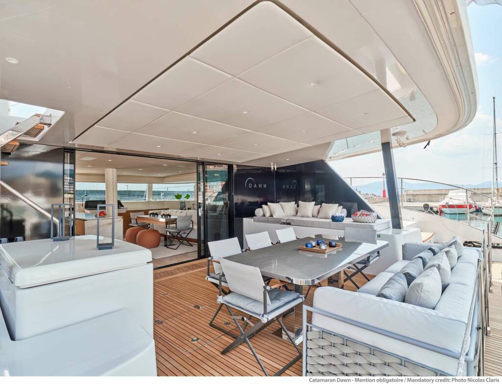 Presentiamo DAWN: Catamarano di lusso varato nel 2019. L'allestimento interno con 4 cabine, puo' ospitare comodamente 8 ospiti.
