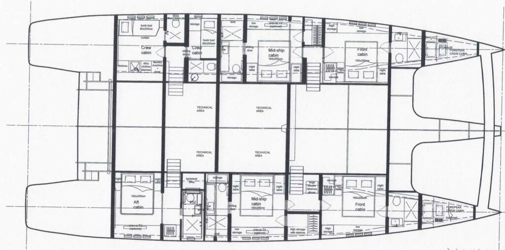 • Catamarano per ampi spazi, stabilità superiore e maggiore privacy.