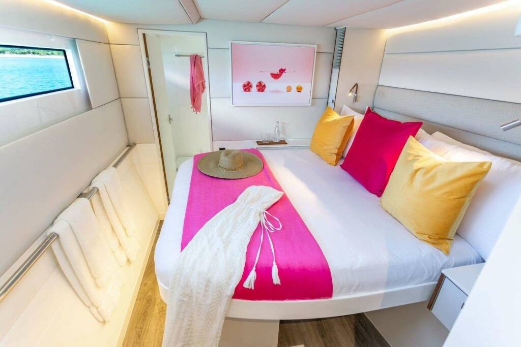 Presentiamo VOYAGE 590: Catamarano di lusso varato nel 2020. L'allestimento interno con 6 cabine, puo' ospitare comodamente 12 ospiti.