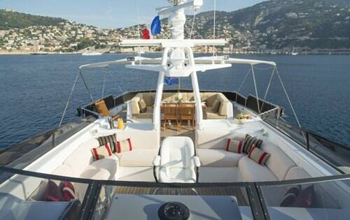FOREDECK - Fwd seating for 4 guests on the bows, access leading up to a large sunbathing area fwd of the flybridge for 4/5 guests.