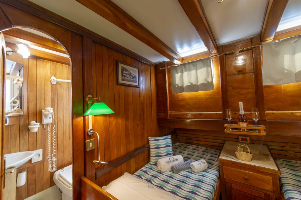 Accommodation: 2 double cabins with a third single bed, ensuite bathroom and shower box