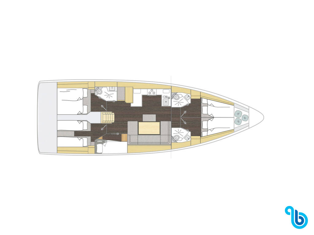 Skipper nie jest wliczony w cenę łodzi. Możliwe będzie dodanie skippera podczas procedury potwierdzania: koszt wynosi zwykle od 180 do 250 euro za dzień; skipper wymaga dedykowanej kabiny. Po sprawdzeniu u operatora BeBlue będzie można poprosić o to, aby skipper spał w jadalni (centralny salon).