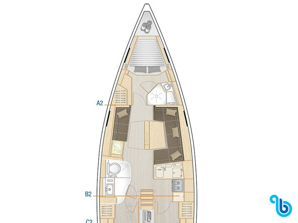 Skipper nie jest wliczony w cenę łodzi. Możliwe będzie dodanie skippera podczas procedury potwierdzania: koszt wynosi zwykle od 180 do 250 euro za dzień; skipper wymaga dedykowanej kabiny. Po sprawdzeniu u operatora BeBlue będzie można poprosić o to, aby skipper spał w jadalni (centralny salon).
