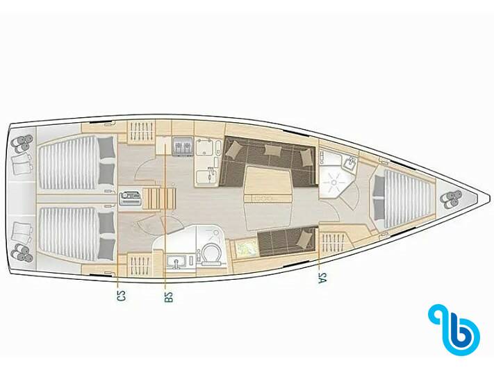 Skipper nie jest wliczony w cenę łodzi. Możliwe będzie dodanie skippera podczas procedury potwierdzania: koszt wynosi zwykle od 180 do 250 euro za dzień; skipper wymaga dedykowanej kabiny. Po sprawdzeniu u operatora BeBlue będzie można poprosić o to, aby skipper spał w jadalni (centralny salon).