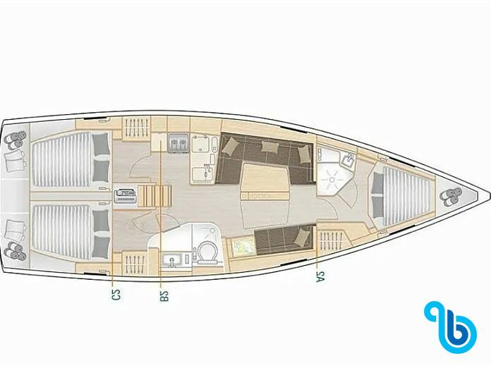 Skipper nie jest wliczony w cenę łodzi. Możliwe będzie dodanie skippera podczas procedury potwierdzania: koszt wynosi zwykle od 180 do 250 euro za dzień; skipper wymaga dedykowanej kabiny. Po sprawdzeniu u operatora BeBlue będzie można poprosić o to, aby skipper spał w jadalni (centralny salon).