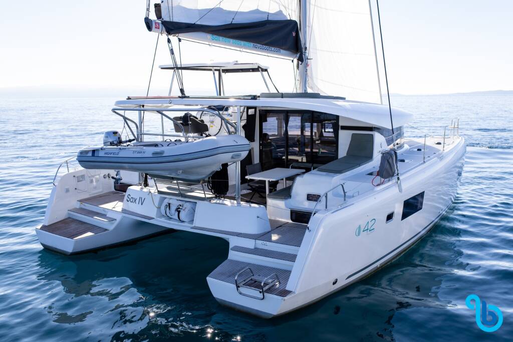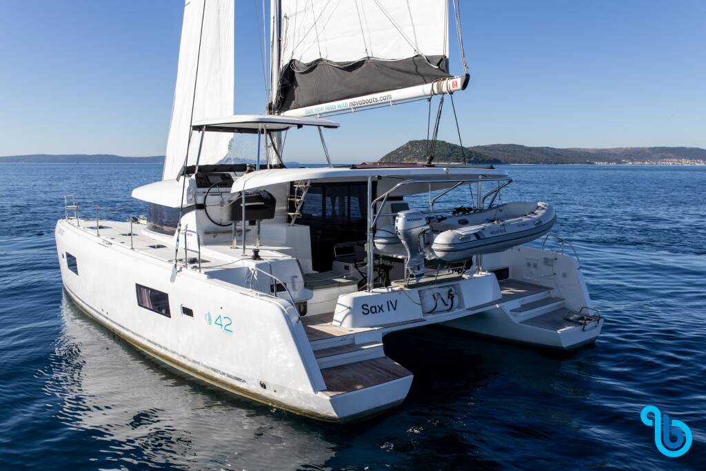 Jacht Lagoon 42 SAX IV (Katamaran), został zwodowany w 2025 i stacjonuje w Rejon Splitu w mieście Marina Nava, Split. Kadłub jest skonfigurowany z 4 kabinami i 4 wc i jest zarejestrowany do komfortowego przyjęcia 12 osób.