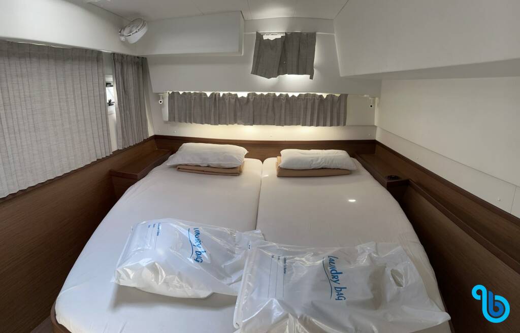 Skipper nie jest wliczony w cenę łodzi. Możliwe będzie dodanie skippera podczas procedury potwierdzania: koszt wynosi zwykle od 180 do 250 euro za dzień; skipper wymaga dedykowanej kabiny. Po sprawdzeniu u operatora BeBlue będzie można poprosić o to, aby skipper spał w jadalni (centralny salon).