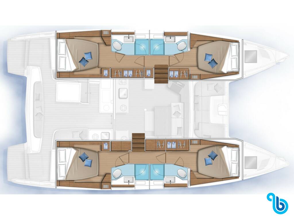 Skipper nie jest wliczony w cenę łodzi. Możliwe będzie dodanie skippera podczas procedury potwierdzania: koszt wynosi zwykle od 180 do 250 euro za dzień; skipper wymaga dedykowanej kabiny. Po sprawdzeniu u operatora BeBlue będzie można poprosić o to, aby skipper spał w jadalni (centralny salon).