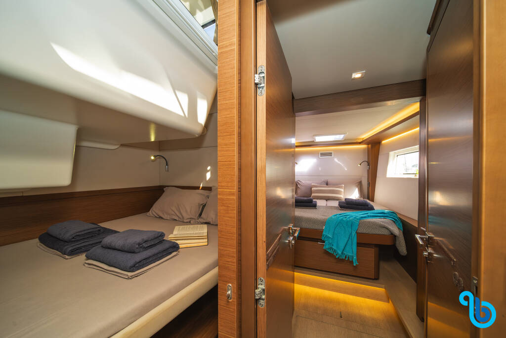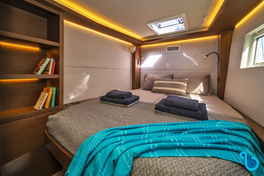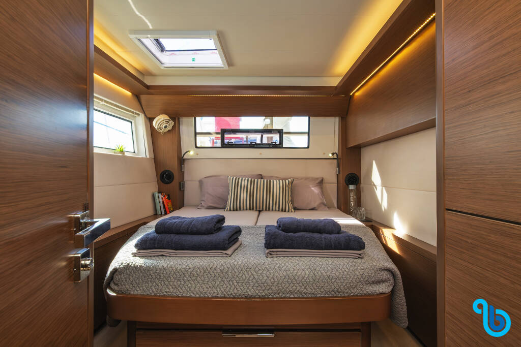 Skipper nie jest wliczony w cenę łodzi. Możliwe będzie dodanie skippera podczas procedury potwierdzania: koszt wynosi zwykle od 180 do 250 euro za dzień; skipper wymaga dedykowanej kabiny. Po sprawdzeniu u operatora BeBlue będzie można poprosić o to, aby skipper spał w jadalni (centralny salon).