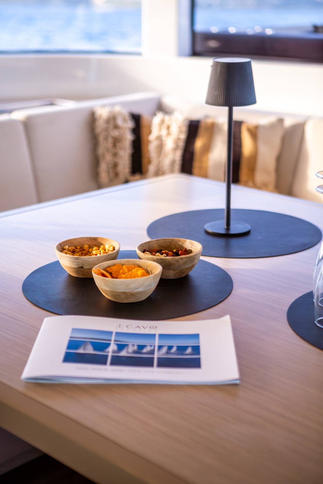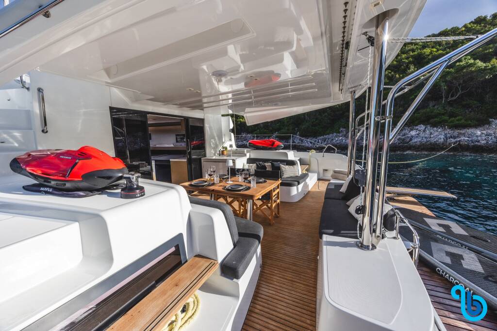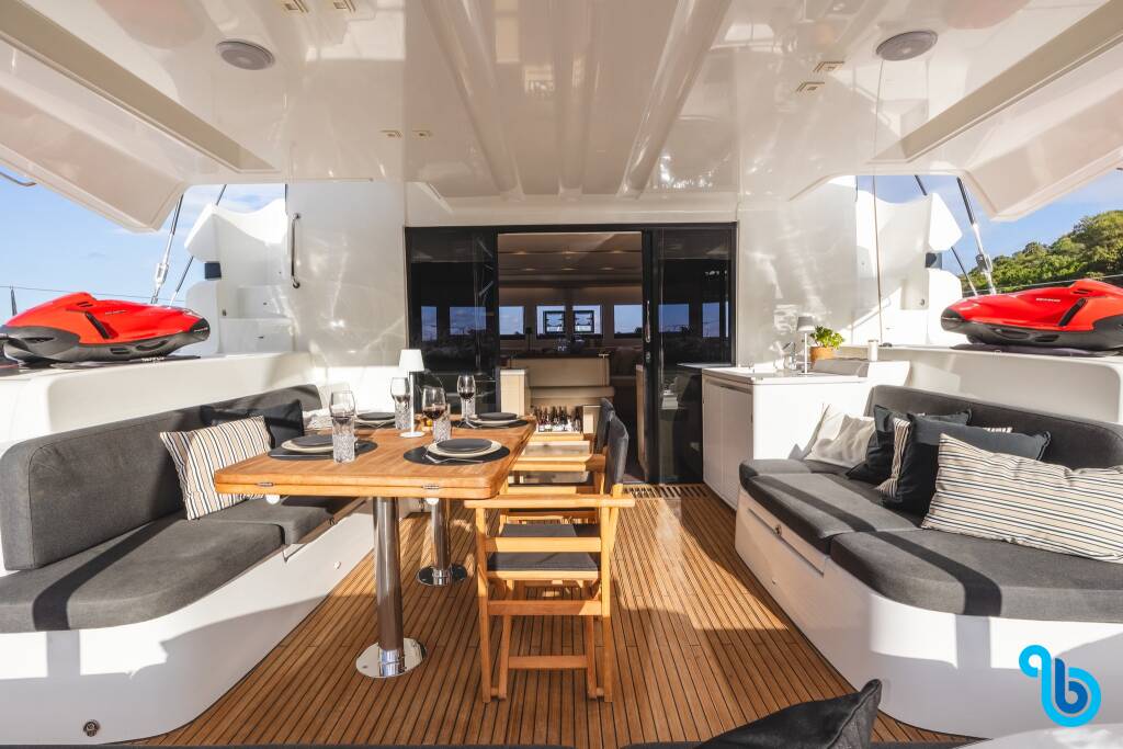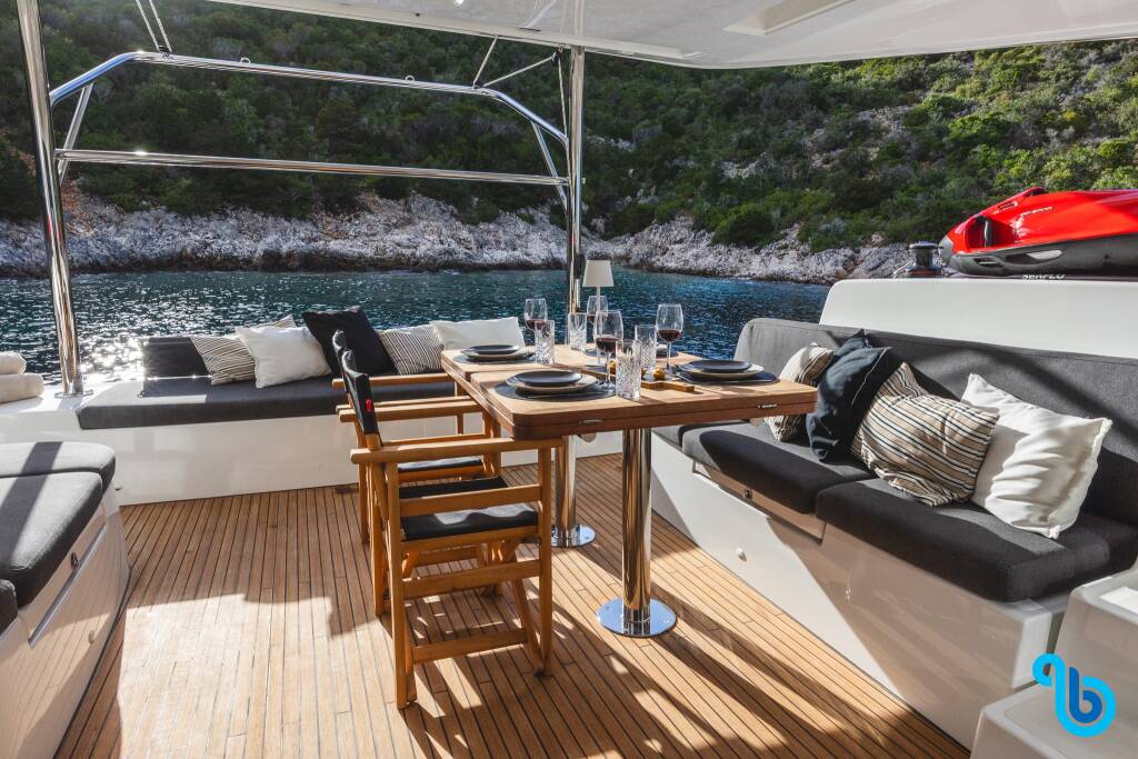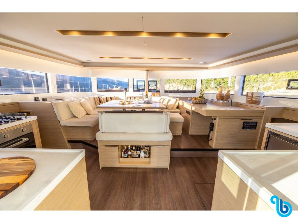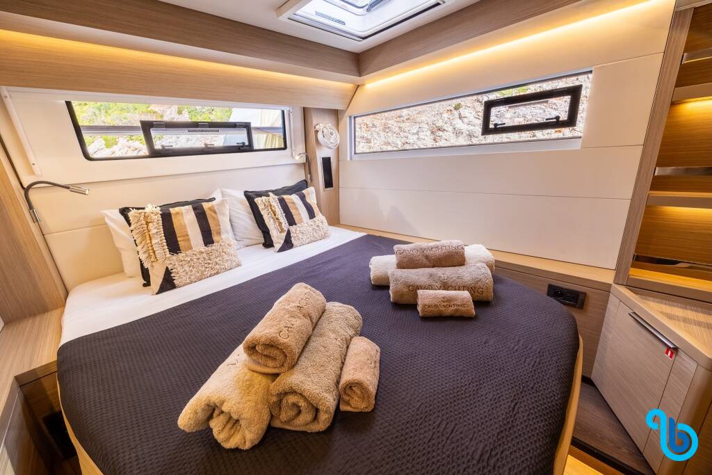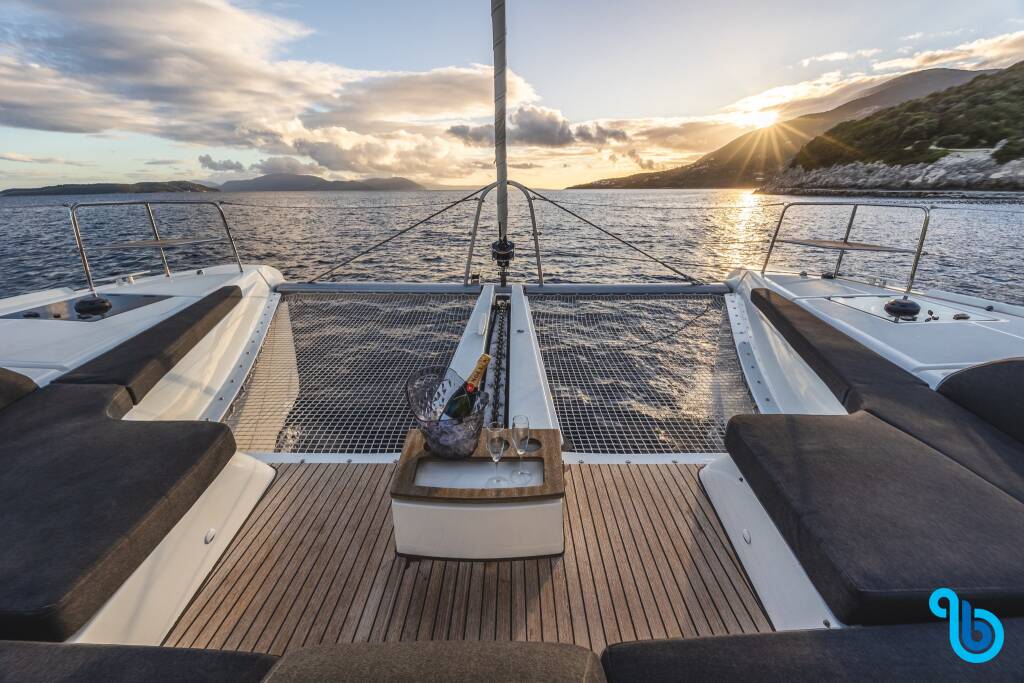 Lagoon 51 CELINA (Katamaran), został zwodowany w 2026 i ma bazę na Wyspy Jońskie w Lefkas main port. Kadłub wyposażony jest w 7 kabiny I 5 i komfortowo pomieści 12 osoby.