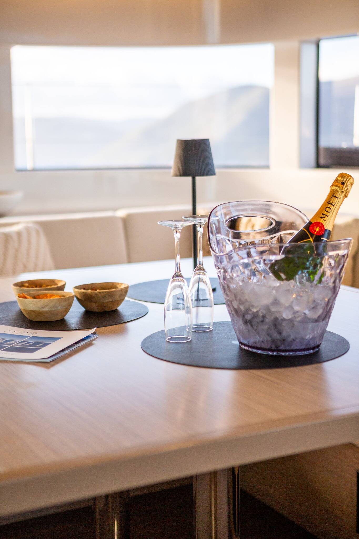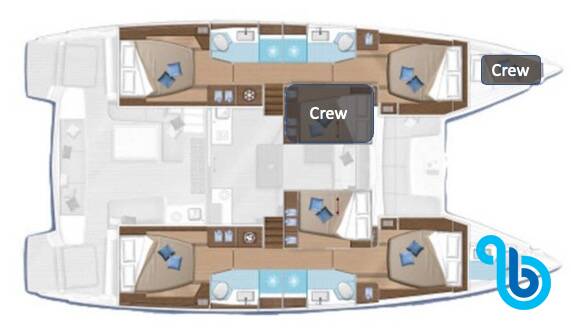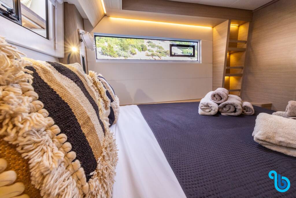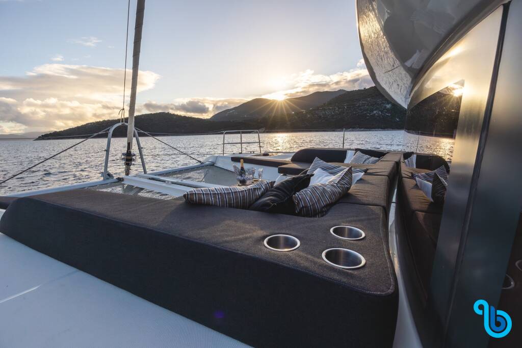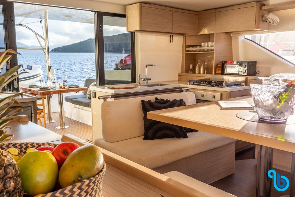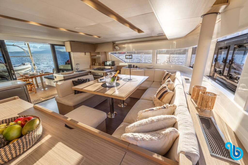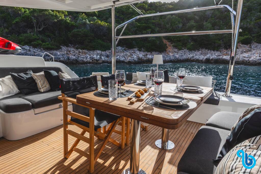 Lagoon 51 CELINA (Katamaran), został zwodowany w 2026 i ma bazę na Wyspy Jońskie w Lefkas main port. Kadłub wyposażony jest w 7 kabiny I 5 i komfortowo pomieści 12 osoby.